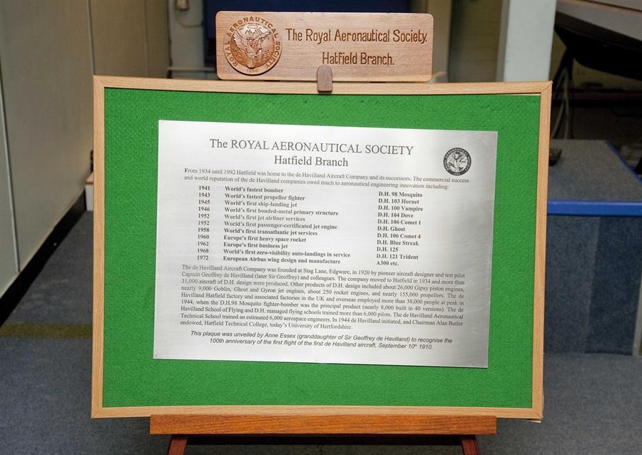 News: Unveiling of de Havilland Commemorative Plaques at the University of Hertfordshire, Hatfield